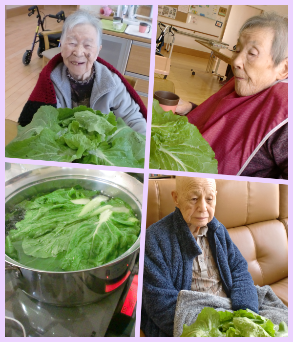 1月7日、喜楽ガーデンで育った大根と白菜を使って七草粥を作りました。ご飯は菜飯にして…