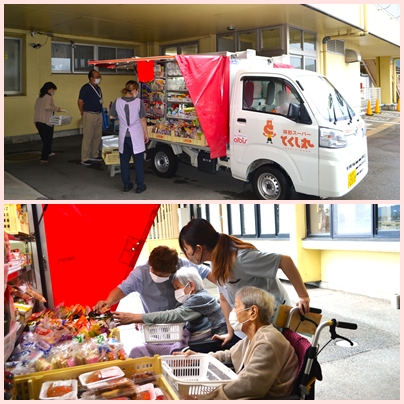 9月25日、お天気は小雨ですが、デイサービスの入口は庇があるので気にせずお買い物を楽しめます。