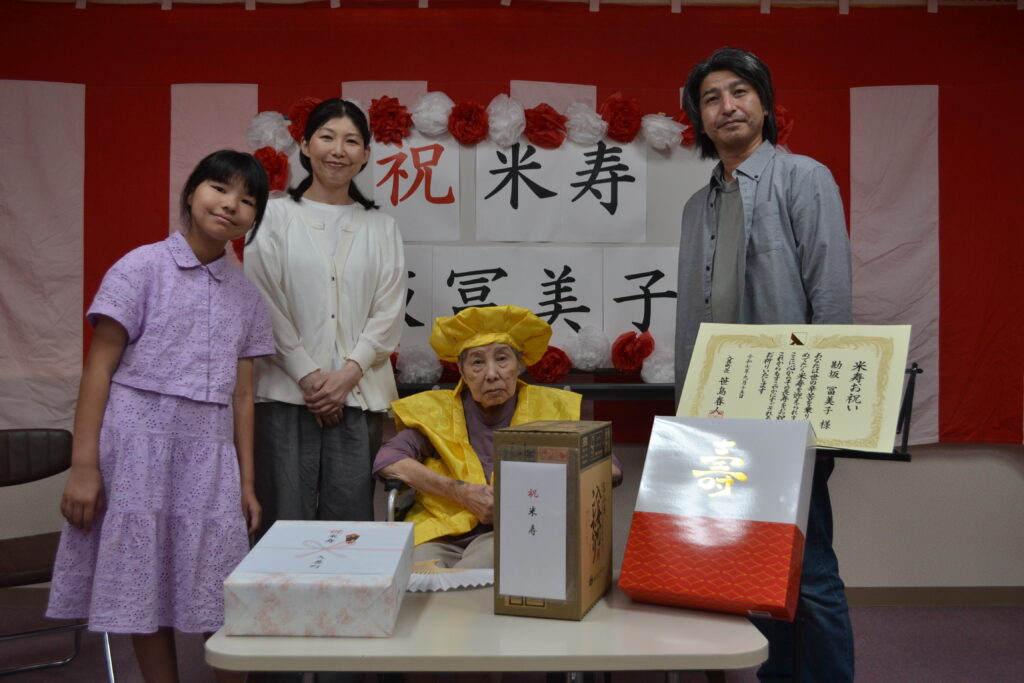 9月27日、昭和13年生まれで来年1月に88歳の米寿を迎えられる勘坂冨美子さんの米寿のお祝い会が催されました。