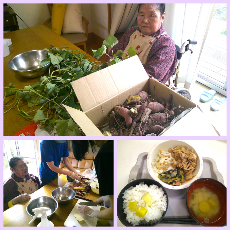 収穫した芋は夕食に、さつまいもご飯とさつまいも粥、さつま汁にしていただきました。
