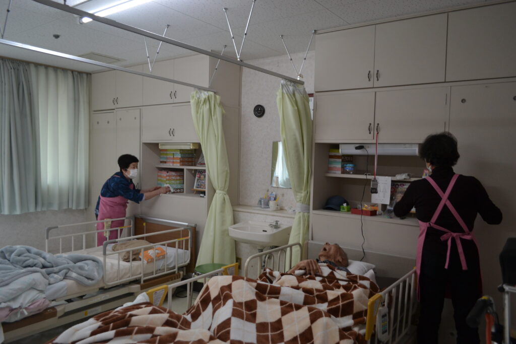 「こんにちは。ボランティアに来ました。棚を掃除させて下さいね。」などと優しく声をかけてから活動に入ります。「あら。きれいにしてもらってありがとう。」「どこから来られたの?」と入居者さまから嬉しそうな声も。