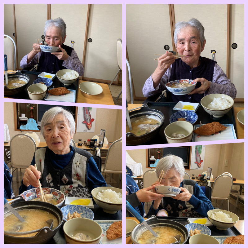 綺麗に骨を取って食べられる方もいてふたりとも満面の笑みを浮かべ、完食されました。ひすいテラスにも寄る予定でしたが雨のため断念、宮崎海岸を眺めながら帰苑しました。「タラ汁食べれたし綺麗な景色見ながらドライブをして良い一日やったわ~」と大満足の様子でした。