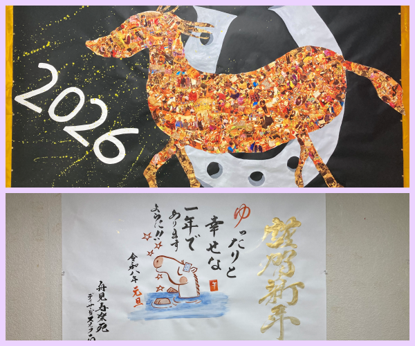 令和8年1月1日にデイサービス廊下に今年の干支の馬が登場しました。