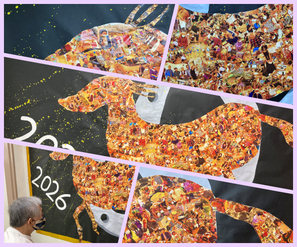 廊下を通る度に「うわ~、すごいね」「上手やわ」などの声が。馬をよーく見ると、皆さんの写真で作らているではないですか。またまたビックリし「良く考えたね。大変やったろ」などの声が聞こえてきます。
