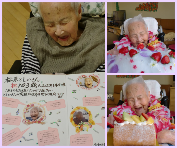 1月15日、103歳になった松原としいさんのお祝いをしました。