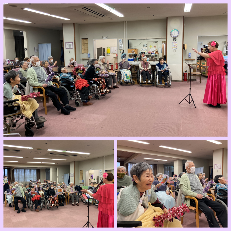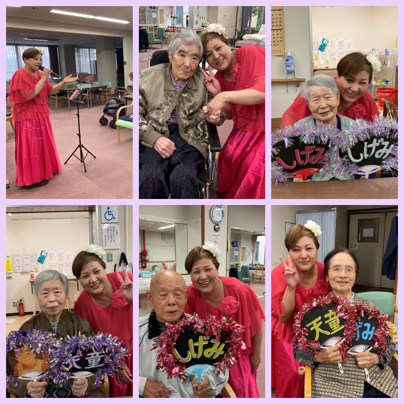 11月3~5日の午後、デイサービス広場にて天童しげみ歌謡ショーが開催されました。